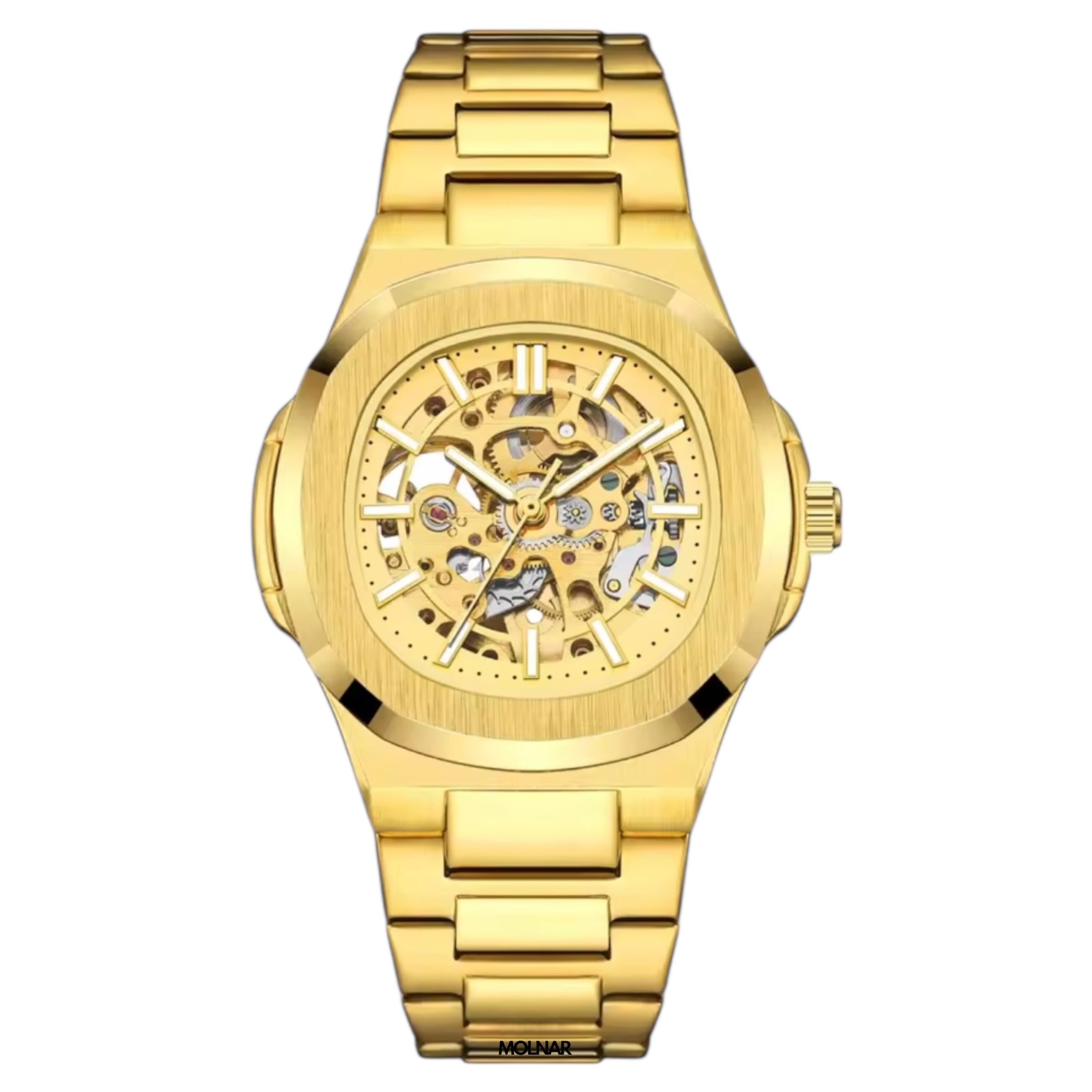 Experience the perfect fusion of luxury and engineering with our automatic watches. Crafted from stainless steel and protected by scratch-resistant sapphire crystal, each timepiece features a stunning skeleton dial that reveals the intricate mechanics within. With Swiss automatic movement and 5 Bar water resistance, these watches offer both exceptional performance and bold, modern style.